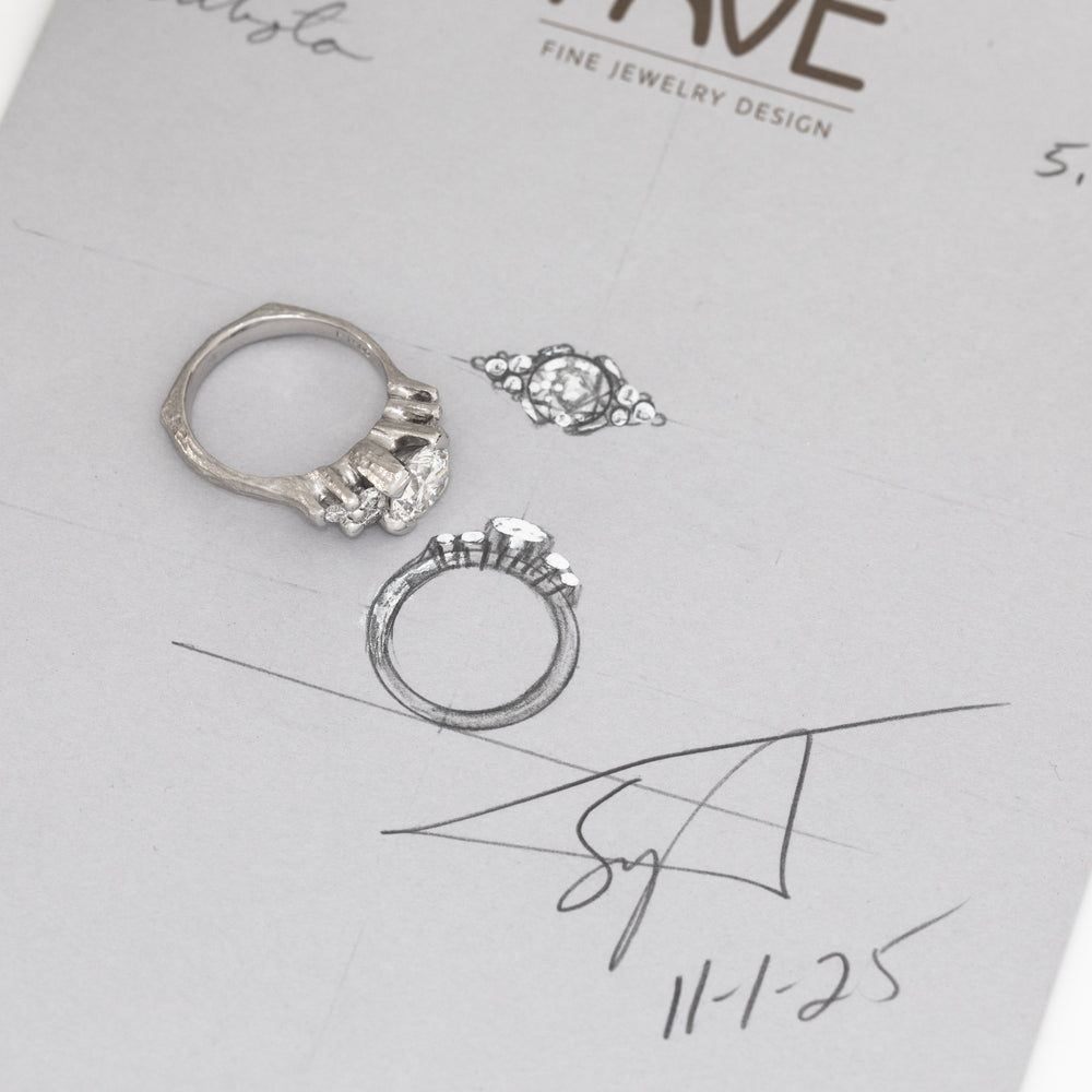 Sybil’s creative roots go back to childhood, where she spent much of her time drawing and painting, earning several awards along the way. In college, she painted large-scale murals to support herself and continue expressing her artistic voice. While living in Hawaii in 2020, she discovered a love for jewelry and began designing and selling rings. What began as a passion project quickly turned into a full-time creative pursuit. At Pavé, Sybil brings her artistic background, thoughtful approach, and love for personal expression to every custom piece she helps create.